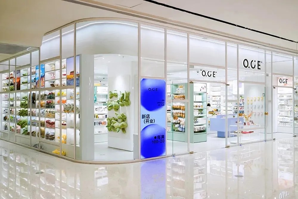 二者通過中間的三個(gè)異形玻璃盒子串聯(lián),分別進(jìn)駐了Snow Peak(西南首家購(gòu)物中心店)、ROARINGWILD成都首家限時(shí)概念店、中式茶飲品牌“白福福”,十分吸睛。