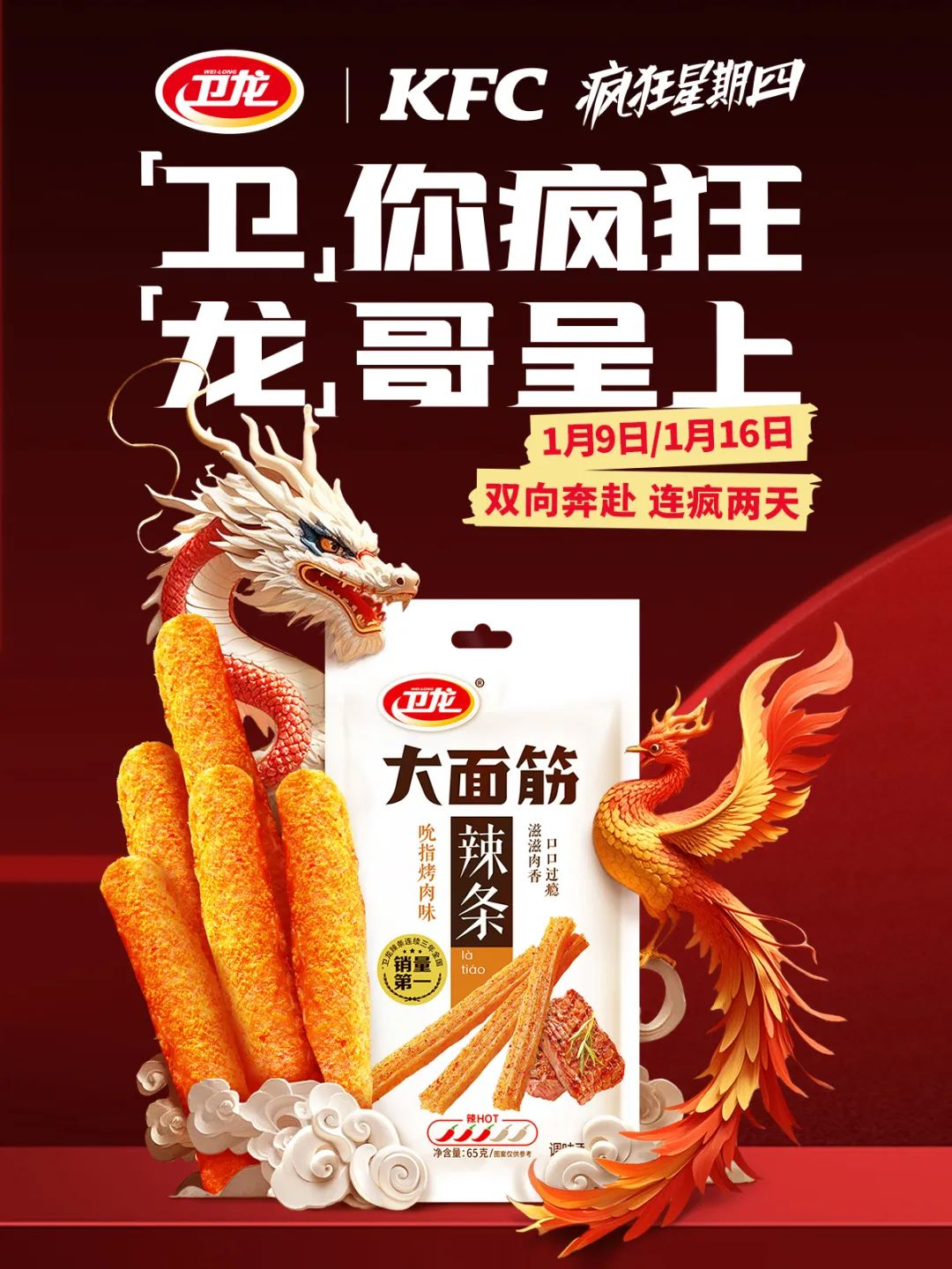 隨著2025年的到來,衛(wèi)龍攜手肯德基推出了“瘋狂星期四”活動(dòng),給營(yíng)銷界帶來了一次不小的沖擊。此次衛(wèi)龍與肯德基的聯(lián)名合作,更是將“瘋狂”的概念發(fā)揮到了極致。在聯(lián)名主題店內(nèi),墻壁上布滿了以“瘋狂星期四”為主題的創(chuàng)意文案,例如“瘋搭子上線,開年就瘋辣!”和“衛(wèi)你瘋狂,龍哥呈上”等,打響2025年發(fā)瘋營(yíng)銷第一炮。