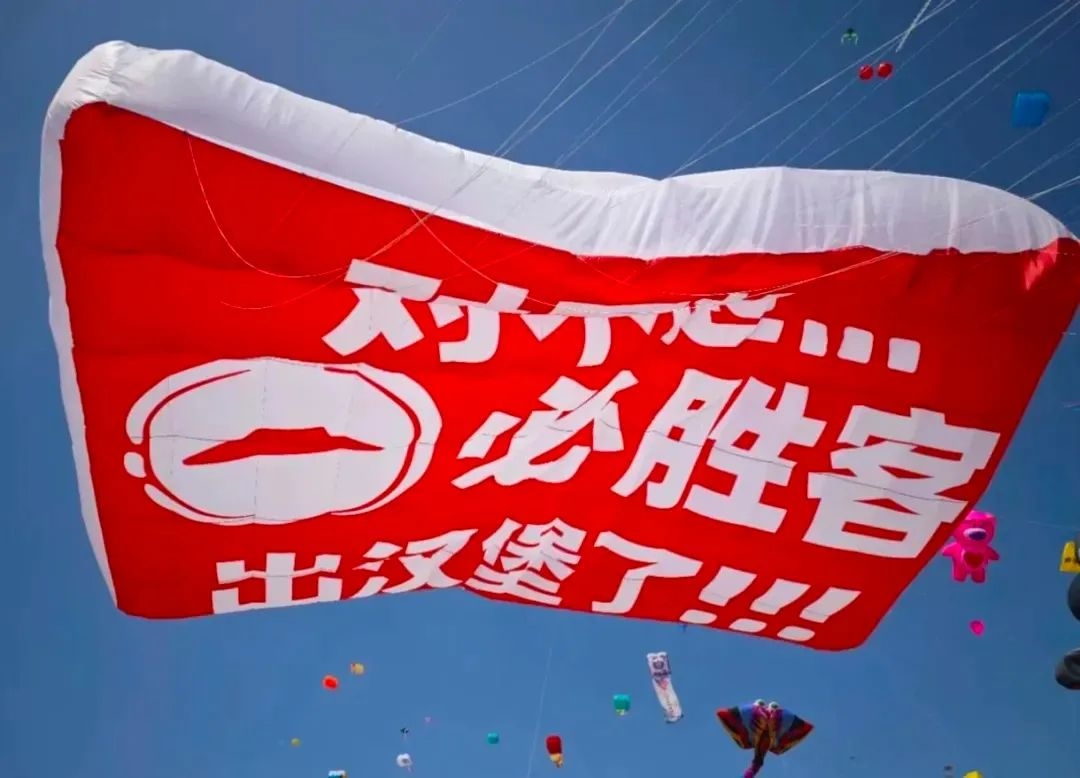 去年的風(fēng)箏節(jié),眾多品牌紛紛參與“發(fā)瘋營(yíng)銷”的浪潮,將這一傳統(tǒng)活動(dòng)推向了新的高峰。在風(fēng)箏節(jié)期間,淘寶連續(xù)兩年推出的巨型“放屁”風(fēng)箏成為焦點(diǎn)。這種打破常規(guī)、充滿娛樂性的廣告方式,不僅吸引了眾多目光,更讓年輕人在歡笑中釋放了壓力。而必勝客則通過簡(jiǎn)潔的大字報(bào)形式,宣布“必勝客推出漢堡”,這種直接而簡(jiǎn)單的營(yíng)銷手段,同樣給人留下了深刻的印象。